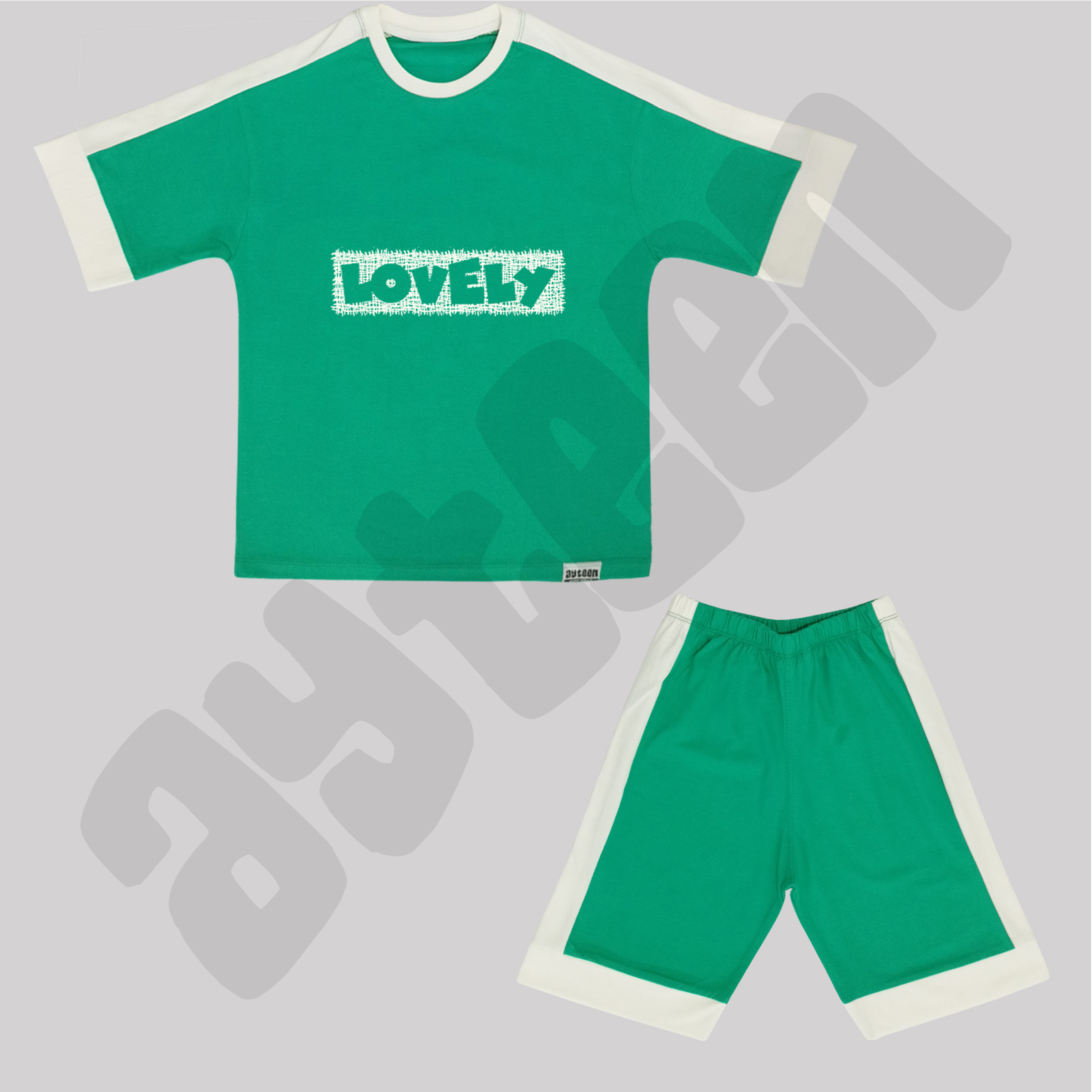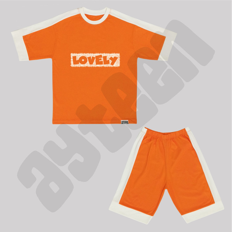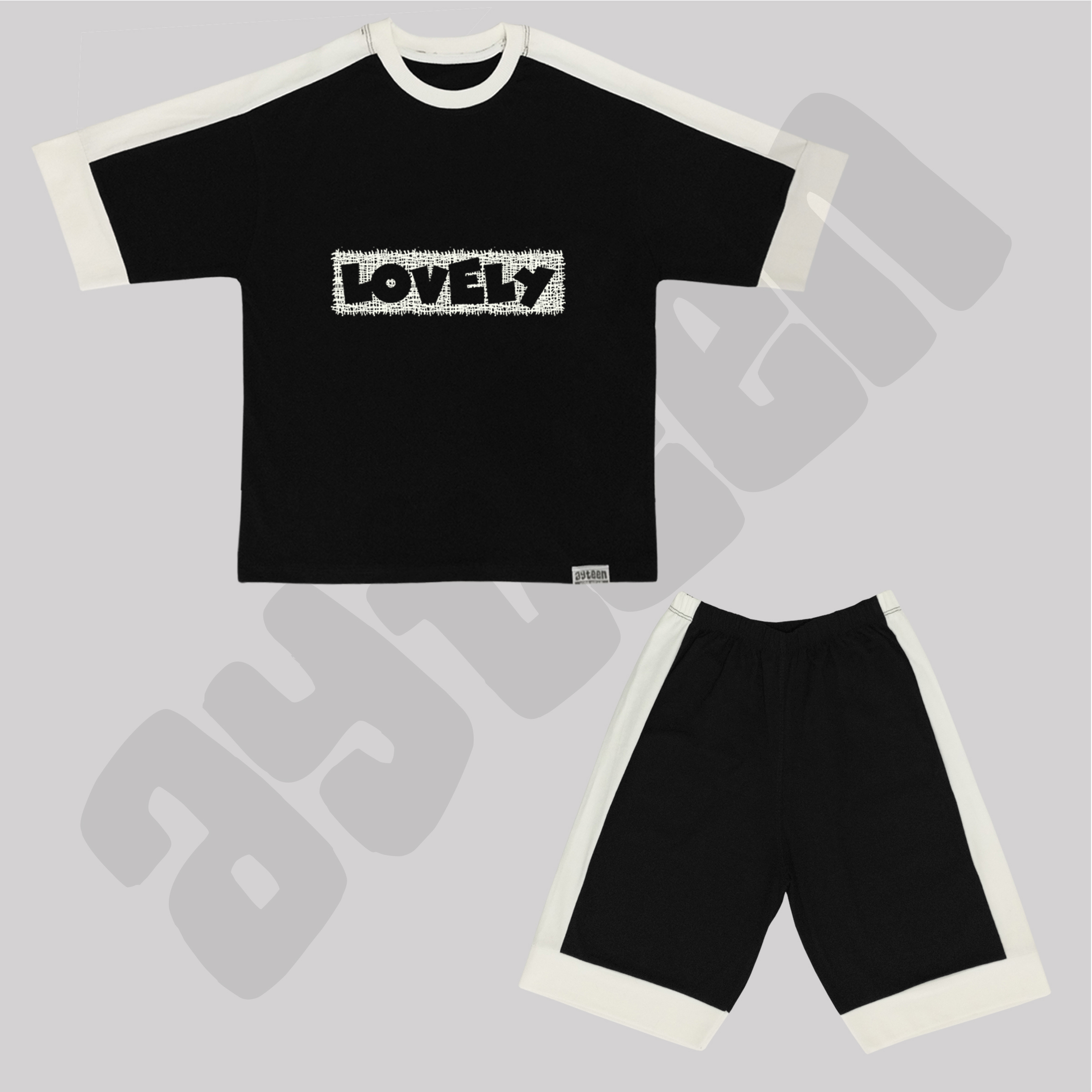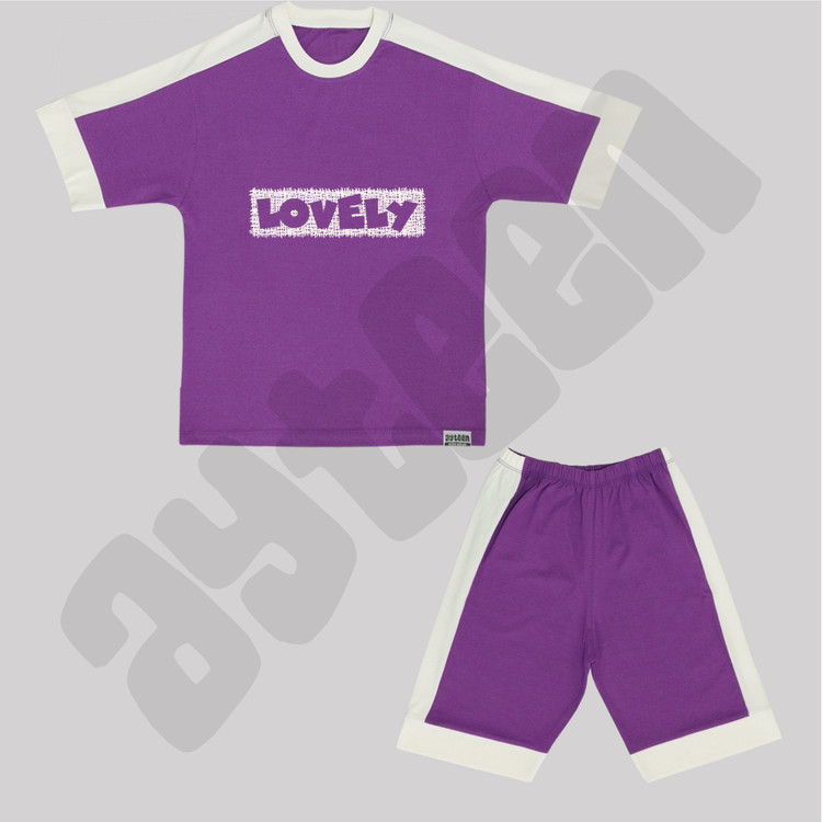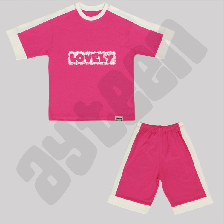 ست دخترانه آستین کوتاه و شلوارک بغل نوار طرح lovely